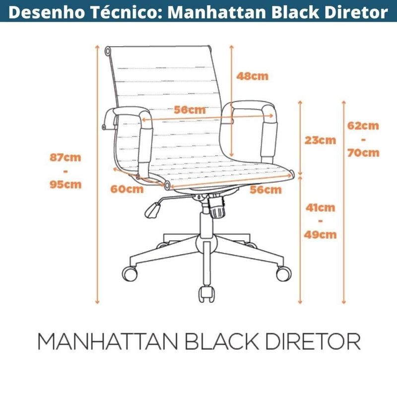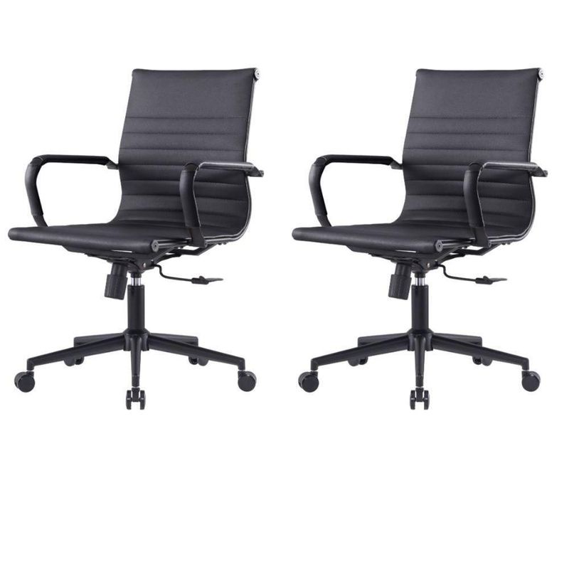 Kit 2 Cadeiras Escritório Manhattan Black Esteirinha Diretor Fratini Pu Preto Base Rodízio Preto
