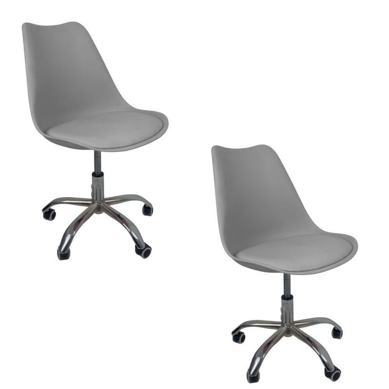 Cadeira Office Base Cromada Com Rodizio Giratória Saarinen Cinza 2