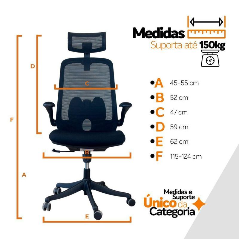 Altura do assento até o chão: 45 a 55 cm