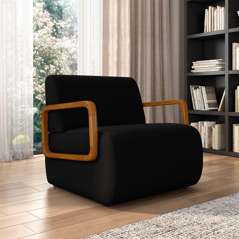 Apresentando a deslumbrante Poltrona Odessa! Com uma estrutura sólida feita de Madeira de Reflorestamento Tratada (Eucalipto), reforçada com cantoneiras e chapas em MDF, esta poltrona é sinônimo de qualidade e durabilidade. Seu assento e encosto fixos são cuidadosamente projetados com percintas elásticas e espuma D-26 para oferecer o máximo conforto e suporte. Os braços de madeira adicionam um toque de elegância e charme ao design, enquanto os pés também em madeira proporcionam estabilidade e um visual harmonioso. Não perca a oportunidade de adicionar sofisticação e conforto ao seu ambiente com a Poltrona Odessa! Dimensões do Produto: