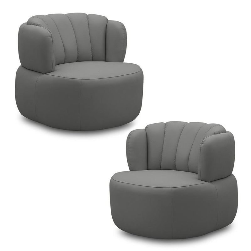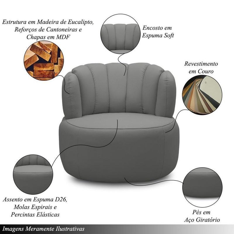 Kit 2 Poltronas Decorativas Mariele Sala De Estar Base Giratória Aço Couro Grafite