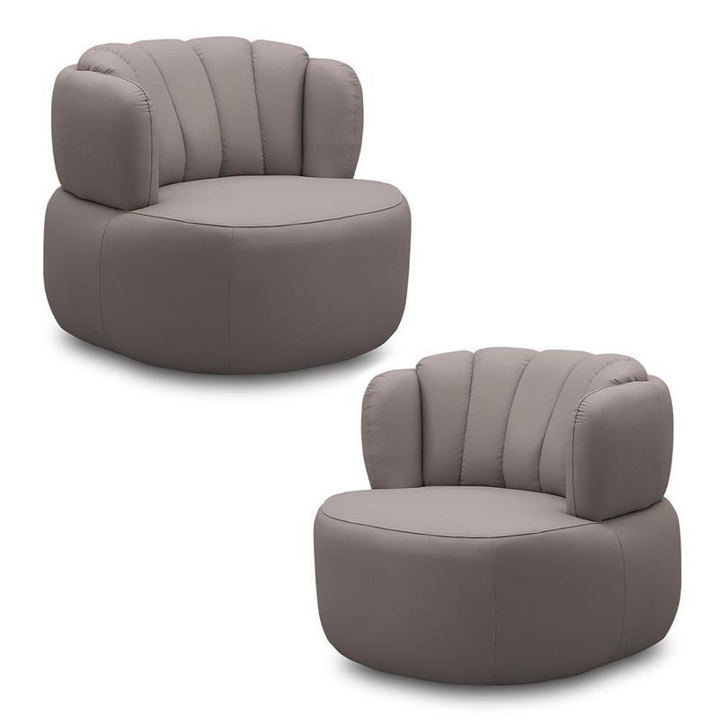 Kit 2 Poltronas Decorativas Mariele Sala De Estar Base Giratória Em Aço Couro Avelã G88 - Gran Belo