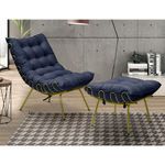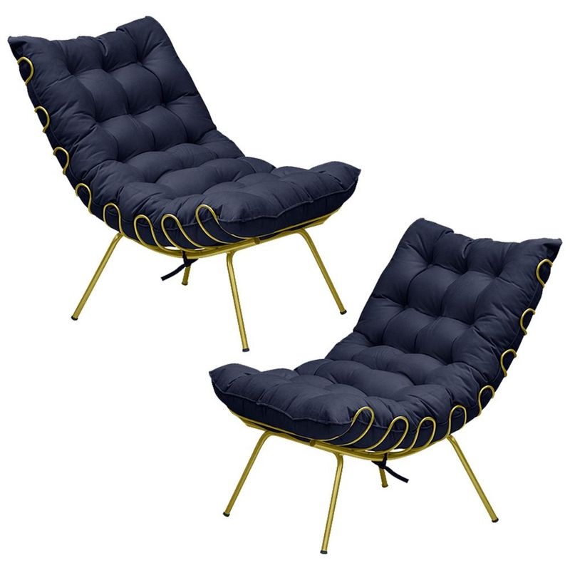 Descrição do Produto: Kit 2 Poltronas Decorativas Sala de Estar Abel Base de Ferro Dourada Veludo Azul - Gran Belo conjunto moderno, mas que não perde sua sofisticação. Com seu revestimento totalmente em Veludo e sua armação de ferro em forma de costela, é ideal para quem quer decorar com um produto de altíssima qualidade e que vai dar um toque super diferente e atual para o ambiente. Proporcionando mais conforto e mais lugares com esse Kit incrível. Aproveite e adquira já o seu! Dimensões das Poltronas: Largura: 64 cm; Altura: 79 cm; Profundidade: 88 cm; Características do Produto: Material da Estrutura: Cano ¾ e Ferro ¼ no assento e encosto; Base: Pés Palito Fixo; Revestimento: Veludo; Conteúdo da Embalagem: 2 Poltrona; Necessita de Montagem: Sim; Instruções/Cuidado: Indicado para uso residencial/comercial, sua limpeza deve ser feita com pano úmido com água limpa, sem esfregar. Pode passar álcool líquido de uso doméstico na limpeza. Nunca sentar no encosto ou braços do produto.