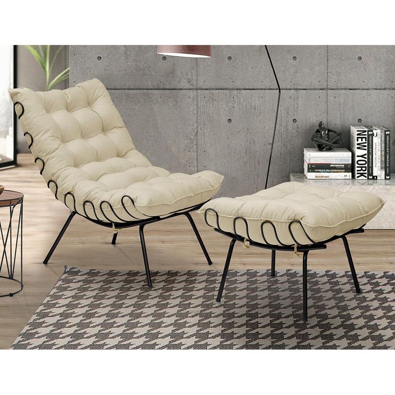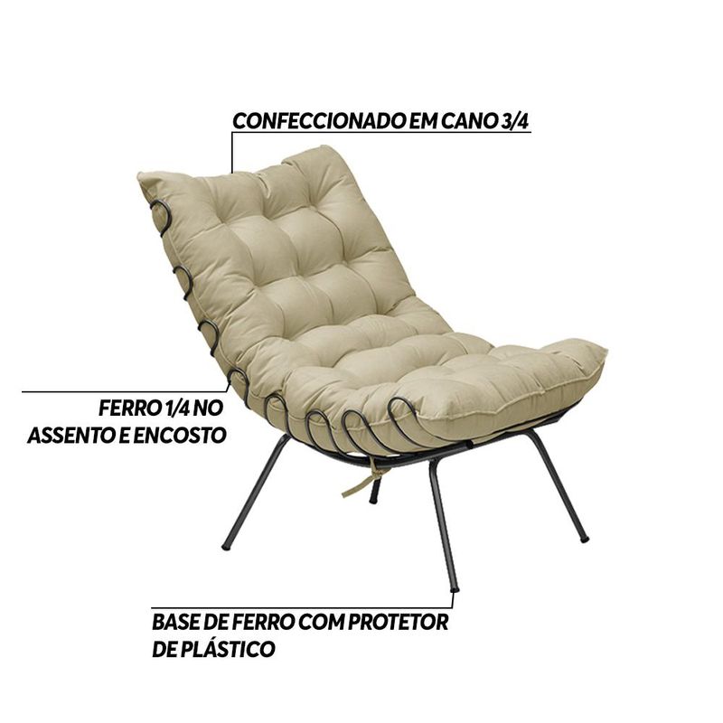 Descrição do Produto: Kit 2 Poltronas Decorativas Sala de Estar Abel Base de Ferro Preto Veludo Bege - Gran Belo conjunto moderno, mas que não perde sua sofisticação. Com seu revestimento totalmente em Veludo e sua armação de ferro em forma de costela, é ideal para quem quer decorar com um produto de altíssima qualidade e que vai dar um toque super diferente e atual para o ambiente. Proporcionando mais conforto e mais lugares com esse Kit incrível. Aproveite e adquira já o seu! Dimensões das Poltronas: Largura: 64 cm; Altura: 79 cm; Profundidade: 88 cm; Características do Produto: Material da Estrutura: Cano ¾ e Ferro ¼ no assento e encosto; Base: Pés Palito Fixo; Revestimento: Veludo; Conteúdo da Embalagem: 2 Poltrona; Necessita de Montagem: Sim; Instruções/Cuidado: Indicado para uso residencial/comercial, sua limpeza deve ser feita com pano úmido com água limpa, sem esfregar. Pode passar álcool líquido de uso doméstico na limpeza. Nunca sentar no encosto ou braços do produto.