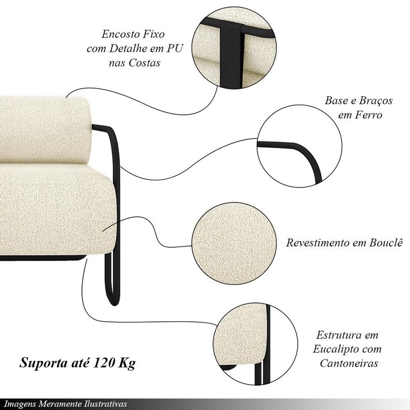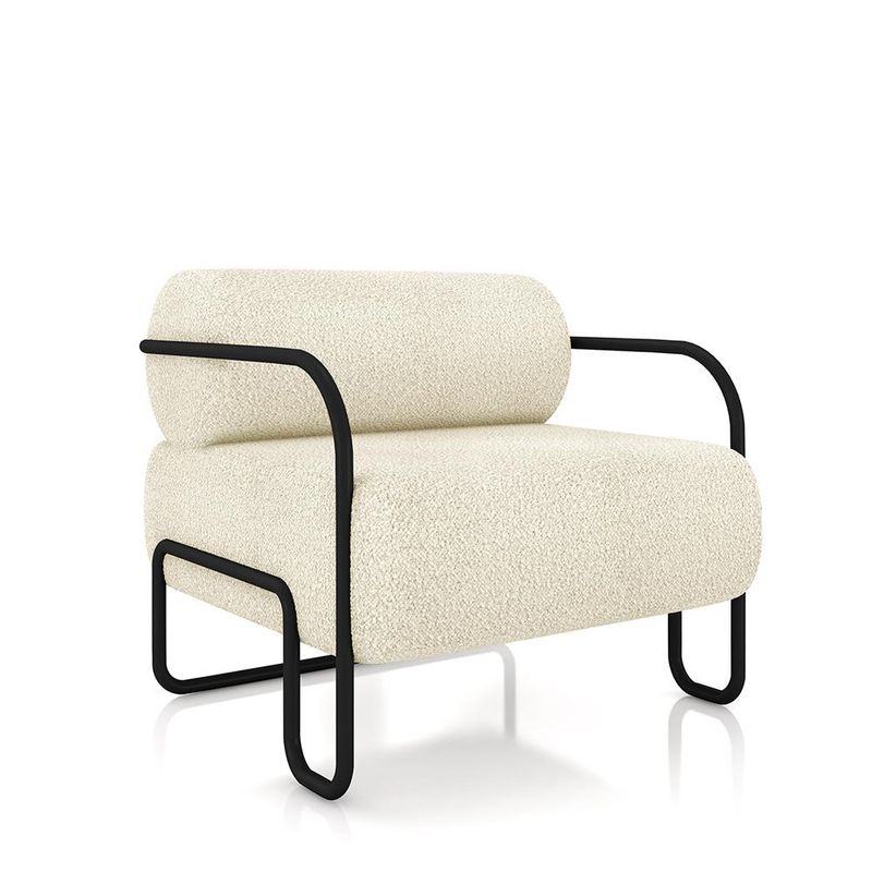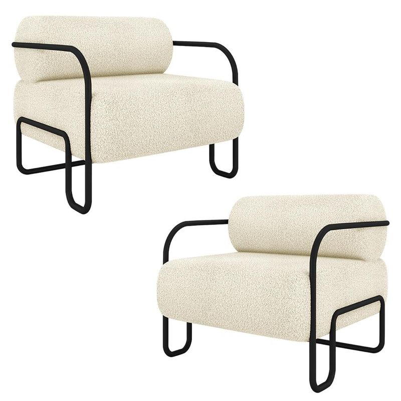 MóveisPoltronaKit 2 Poltronas Decorativas Sala de Estar Polatsk Base Industrial de Ferro Bouclê Off White G33 - Gran Belo