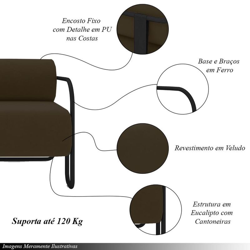 MóveisPoltronaKit 2 Poltronas Decorativas Sala de Estar Polatsk Base Industrial de Ferro Veludo Marrom G33 - Gran Belo