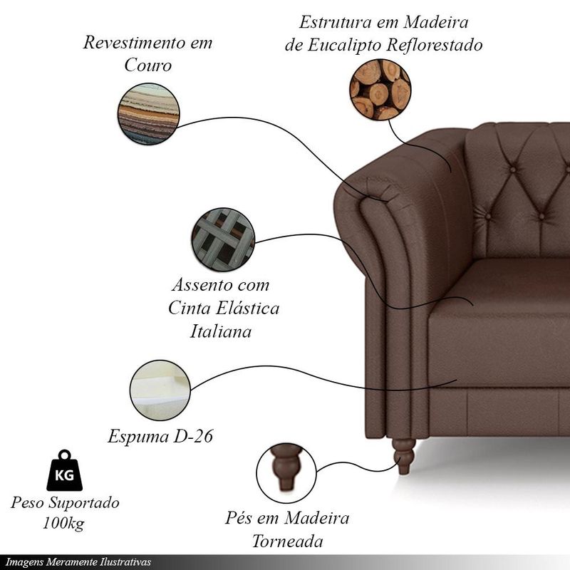 Adicione um toque de sofisticação ao seu espaço com o Kit de 2 Poltronas Stanford Estilo Chesterfield, um conjunto que exala elegância e conforto incomparável. Ideal para criar um ambiente refinado e acolhedor, este kit é perfeito para quem valoriza o design clássico e a qualidade superior em dupla.Cada poltrona é construída com madeira reflorestada de eucalipto, oferecendo uma base sólida e sustentável que garante longevidade e respeito ao meio ambiente. O encosto e os braços são preenchidos com fibra siliconada, proporcionando um toque macio e agradável. O assento é equipado com cinta elástica italiana tensionada e almofada ensacada de espuma D-26, oferecendo um suporte firme e confortável para uma experiência de uso superior.O revestimento em couro de alta qualidade traz um aspecto luxuoso, enquanto os pés torneados fixos em madeira maciça adicionam um charme refinado e garantem estabilidade e durabilidade.Com a robustez necessária para suportar até 100 kg cada, essas poltronas são ideais para uso diário e proporcionam uma experiência de sentar-se confortável e segura.O Kit de 2 Poltronas Stanford Estilo Chesterfield é a escolha perfeita para quem deseja um toque de classe e conforto em qualquer ambiente. Seu design atemporal e detalhes sofisticados fazem deste conjunto um destaque em qualquer sala de estar, escritório ou área de leitura.