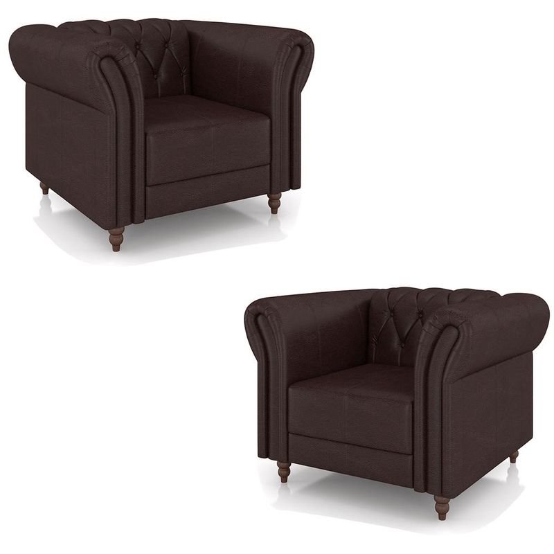 Adicione um toque de sofisticação ao seu espaço com o Kit de 2 Poltronas Stanford Estilo Chesterfield, um conjunto que exala elegância e conforto incomparável. Ideal para criar um ambiente refinado e acolhedor, este kit é perfeito para quem valoriza o design clássico e a qualidade superior em dupla.Cada poltrona é construída com madeira reflorestada de eucalipto, oferecendo uma base sólida e sustentável que garante longevidade e respeito ao meio ambiente. O encosto e os braços são preenchidos com fibra siliconada, proporcionando um toque macio e agradável. O assento é equipado com cinta elástica italiana tensionada e almofada ensacada de espuma D-26, oferecendo um suporte firme e confortável para uma experiência de uso superior.O revestimento em couro de alta qualidade traz um aspecto luxuoso, enquanto os pés torneados fixos em madeira maciça adicionam um charme refinado e garantem estabilidade e durabilidade.Com a robustez necessária para suportar até 100 kg cada, essas poltronas são ideais para uso diário e proporcionam uma experiência de sentar-se confortável e segura.O Kit de 2 Poltronas Stanford Estilo Chesterfield é a escolha perfeita para quem deseja um toque de classe e conforto em qualquer ambiente. Seu design atemporal e detalhes sofisticados fazem deste conjunto um destaque em qualquer sala de estar, escritório ou área de leitura.
