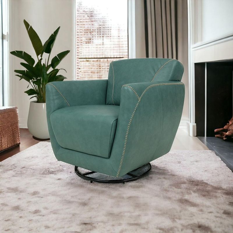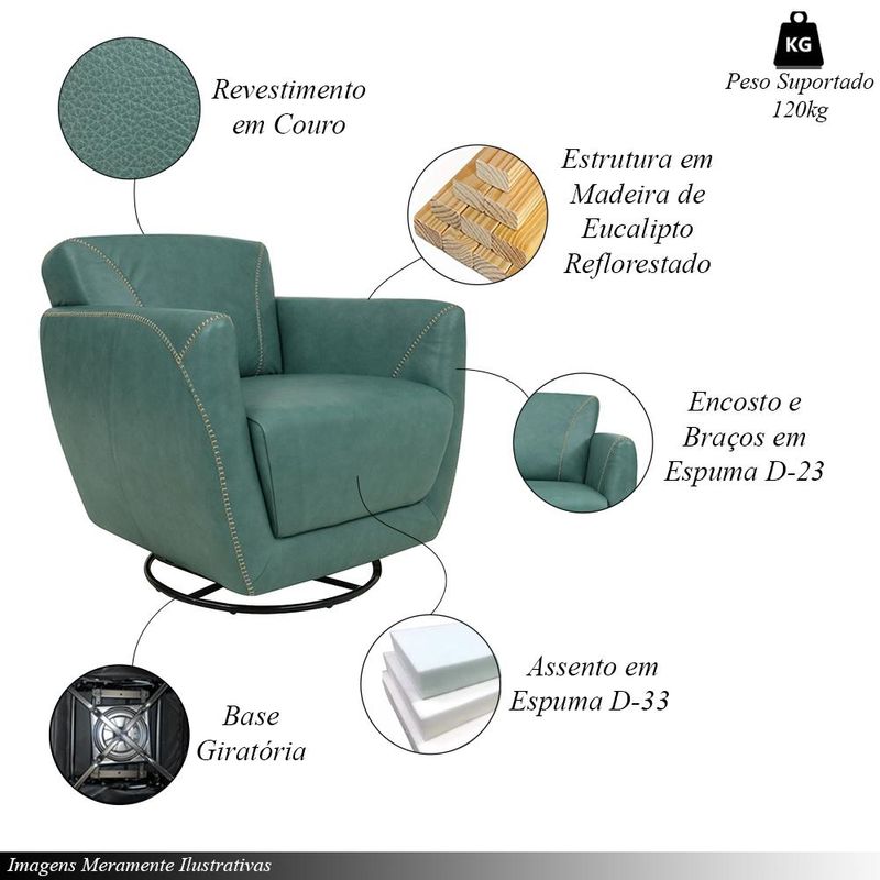 MóveisPoltronaKit 2 Poltronas Decorativas Valentina Sala de Estar Giratória Couro Azul Turquesa Manchado G40 - Gran Belo