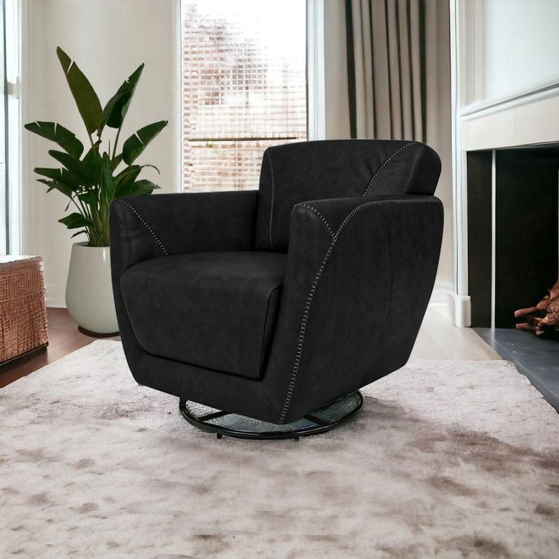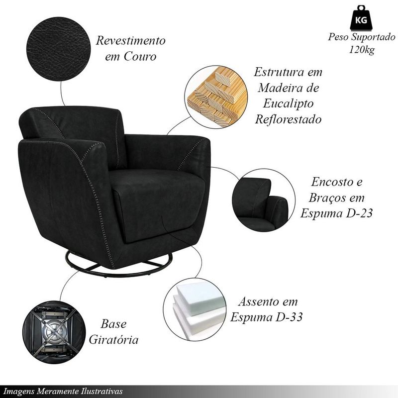 MóveisPoltronaKit 2 Poltronas Decorativas Valentina Sala de Estar Giratória Couro Preto Manchado G40 - Gran Belo