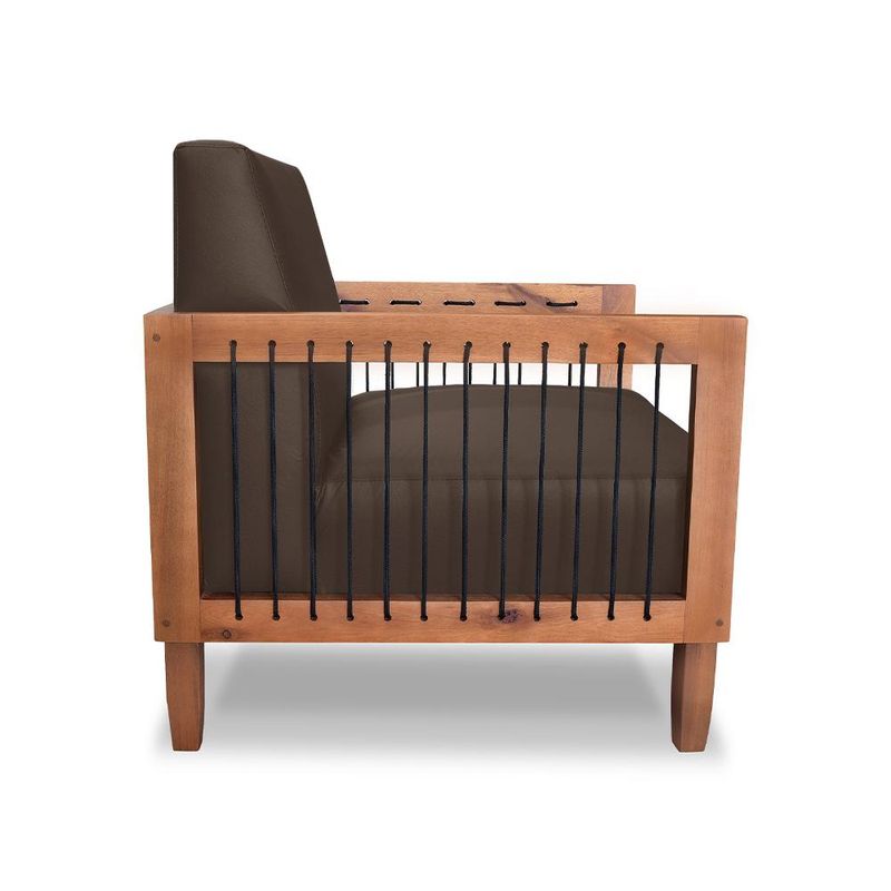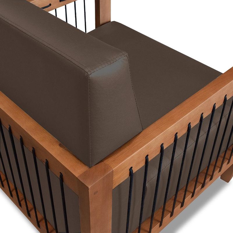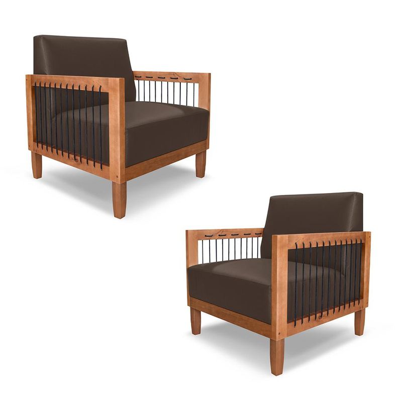 MóveisPoltronaKit 2 Poltronas Sala de Estar Pés Madeira Maciça Corda Náutica Preta 75cm Manila PU Marrom G63 - Gran Belo