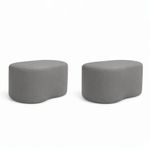 Kit 2 Puff Feijão Curvo Orgânico Redondo Sala Confortável Moderno Linho Cinza