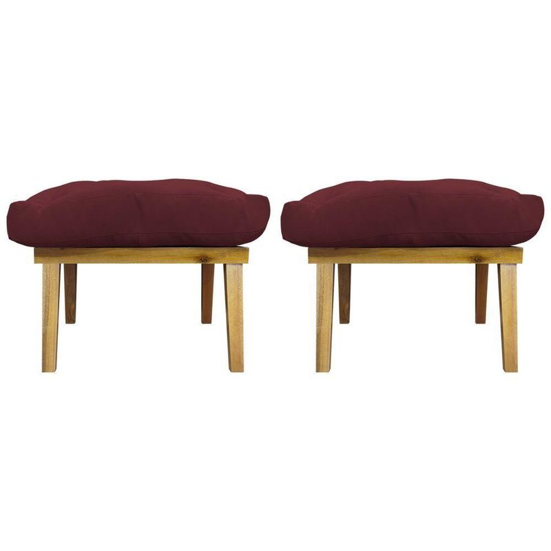 Kit 2 Puffs Decorativos Para Sala Marty Retangular Linho Cores - Bordô, Linho