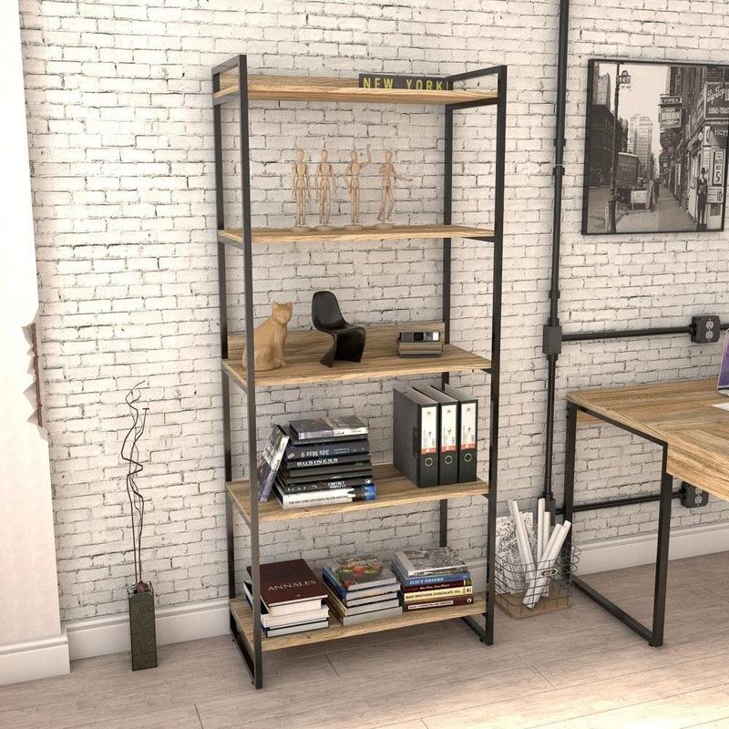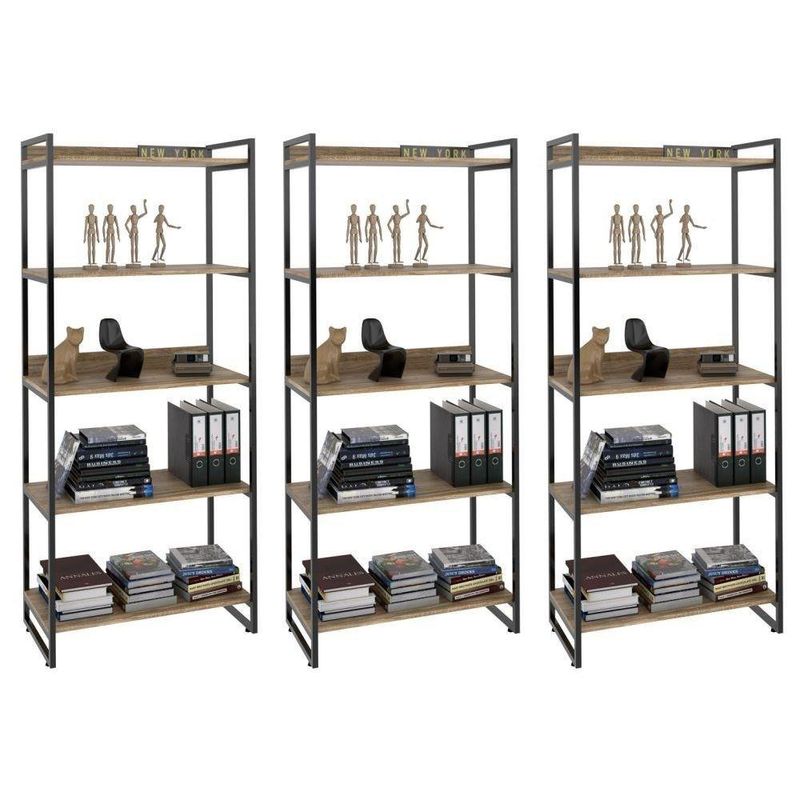 Kit 3 Estantes Livreiro Multiuso Prisma Estilo Industrial 80cm 5 Prateleiras C08 Carvalho Mpozenato