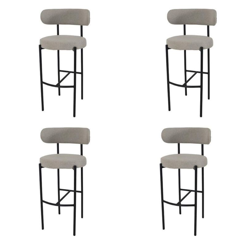 Kit 4 Banquetas Altas Camelia Estofada Linho Cinza Com Encosto Para Cozinha Balcão E Área Gourmet Cinza