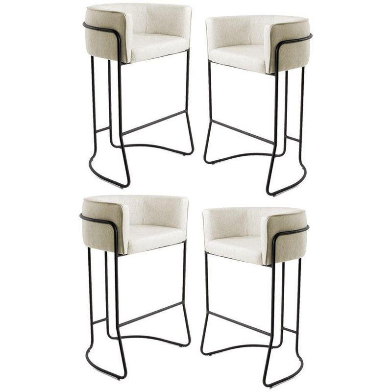 Kit 4 Banquetas Decorativas Base Aço Preto Betina C-107 Linho Bege Cru Domi