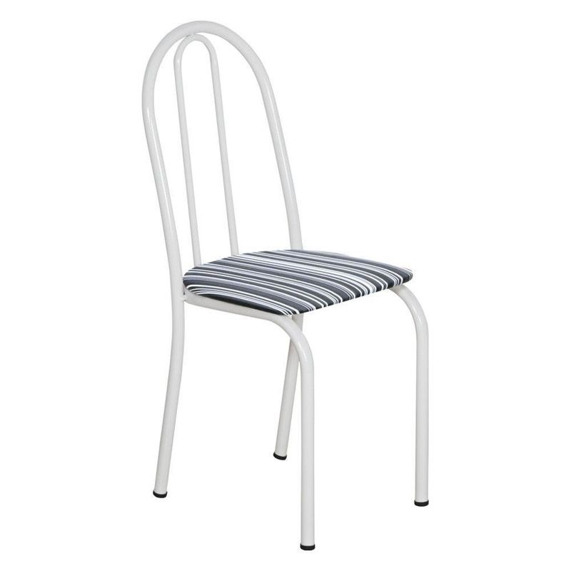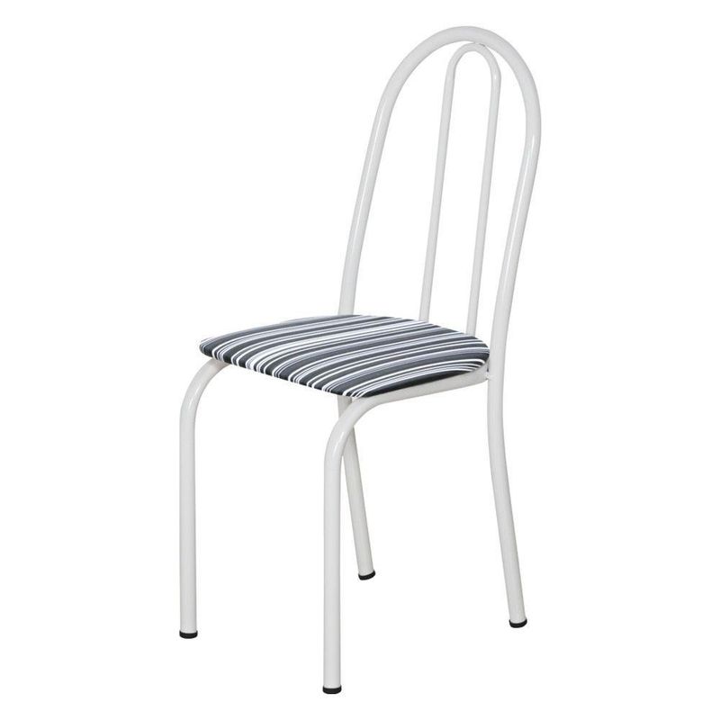Kit 4 Cadeiras De Cozinha Califórnia Estampado Preto Listrado Pés De Ferro Branco - Pallazio