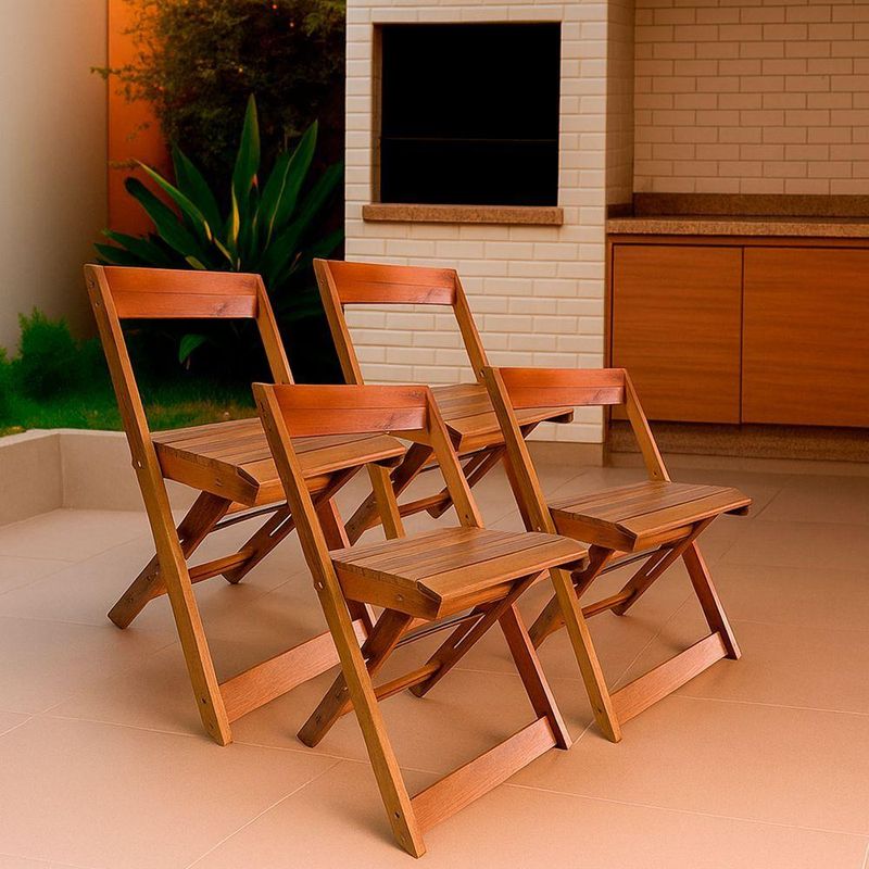 Kit 4 Cadeiras Dobráveis De Madeira Para Bar Ismalu Mel