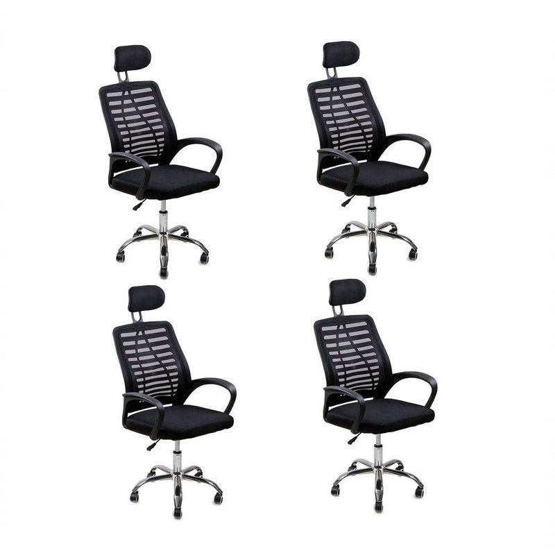 Kit 4 Cadeiras Escritório Diretor Tela Mesh Encosto De Cabeça Preto