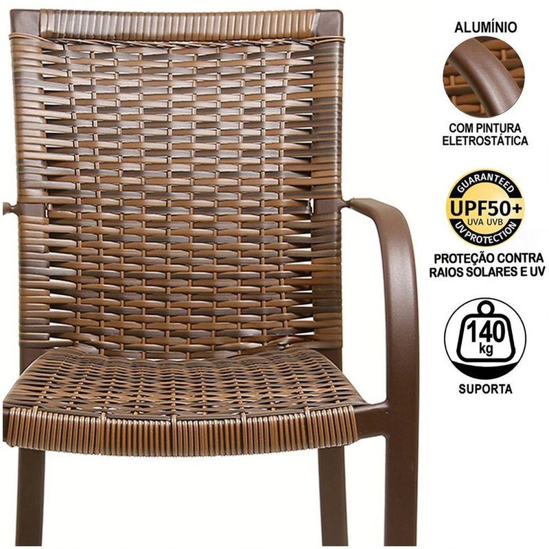 Combo para Piscina Ascoli - TRAMA Cadeiras de alumínio pintura com eletrostática, Mesa alta ripada e central com estrutura de madeira.Ideal para área de piscina, este combo compõe qualquer ambiente, com um designer moderno e leve, garante conforto e praticidade.Itens inclusos: 4 Cadeiras + 1 Mesa + + Base.- Cadeiras fabricadas em alumínio com pintura eletrostática e revestida em fibra .Mais leve e resistente do que o Ferro, o Alumínio também pode ser molhado, pois não enferruja, a durabilidade cerca de 8 a 10 anos.- Mesa alta em alumínio com ripado.- central em estrutura de Madeira, e base de concreto.Ambiente: Interno e externo, pode ficar exposto ao sol e chuva.Nossos produtos são de altíssima qualidade, leve e com design moderno, garantindo assim conforto e praticidade para seu bem-estar.Essa característica oferece resistência suficiente para o móvel ser utilizado em decorações de ambientes externos.Combinação em vários ambientes com traços modernos e clássicos, para todos os gostos!ALUMÍNIO MAIS RESISTENTE DO QUE FERRO, NÃO ENFERRUJA E MAIOR DURABILIDADE!Especificação do produto.- Estrutura: Alumínio, não enferruja;- Pintura: Eletrostática, não descasca;- Solda: Solda TIG, de alta resistência,- Acabamento: Fibra com UV Protection;Fibra especial - Sua proteção UV proporciona maior durabilidade, resistente ao Sol e Chuva com proteção UV, a fibra da Trama /UP Mobille é produzida com materiais de altíssima qualidade.Peso Máximo indicado: 140 Kg.GARANTIA: 1 ano de fábrica.FABRICANTE: TRAMA Nossos produtos são ideias para decorar ambientes clássicos e modernos, interno e externo como: Cozinha, Sala, Quarto, Varanda, Sacada, Edícula, Área de Piscina, Jardim, Área de lazer, Festa, Reunião, Churrasco, Área Gourmet, Recepção, Sala de espera, Sala de Filmes entre outros.Fácil de Limpar – Utilize Sabão Neutro para a limpeza das fibras e estruturas.Passe um pouco com um pano macio, logo em seguida, passe outro pano macio, porém seco. Deixando assim, com o brilho novamente!.....TGA - Você também pode buscar por - Conjunto de área, cadeira de alumínio, cadeira de área, cadeira para piscina, cadeira para área de piscina, cadeira pintada, cadeira com pintura, cadeira para sacada, cadeira para sol, cadeira para varanda, cadeira gourmet, cadeira artesanal, kit de cadeiras, combo de cadeiras, cadeiras artesanais, cadeiras de fibra, cadeira de junco, cadeiras de móveis artesanais, cadeira , jogo de cadeiras, cadeira resistente, cadeira vime, trama móveis, tramar cadeiras, mesa alta, mesa com , mesa ripado, , central, para área de festa, sombreiro, guarda sol.