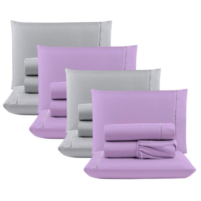 Kit C/ 4 Jogos Cama Lençol Casa Scarpa Unique Casal Padrão Micro Percal 400 Fios Ponto Palito 4 Peças - Lilás + Cinza