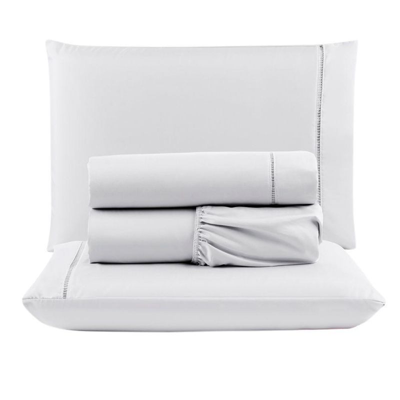 Kit C/ 4 Jogos Cama Lençol Casa Scarpa Unique Casal Padrão Micro Percal 400 Fios Ponto Palito 4 Peças - Lilás + Branco