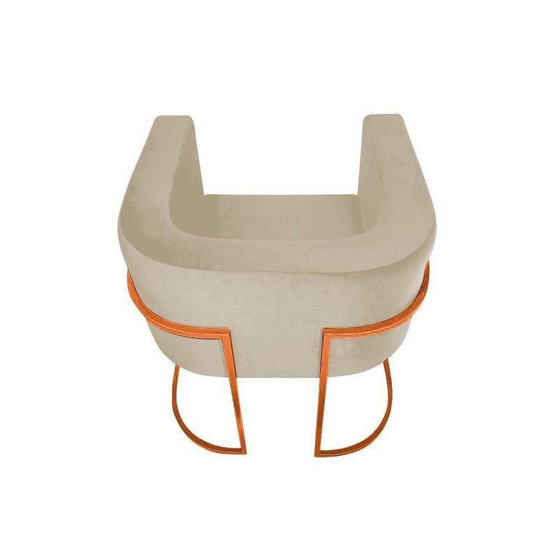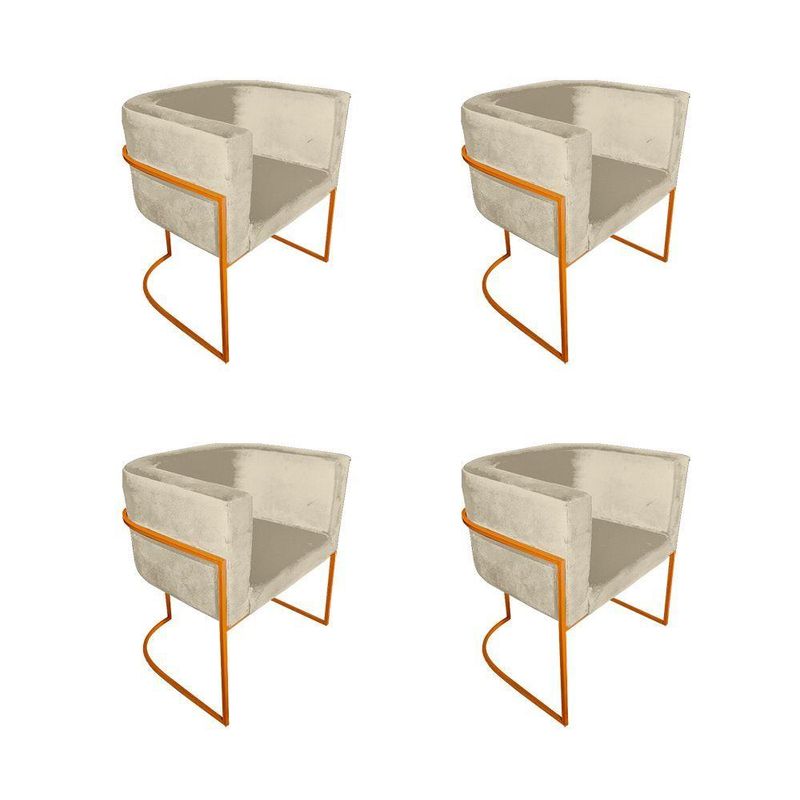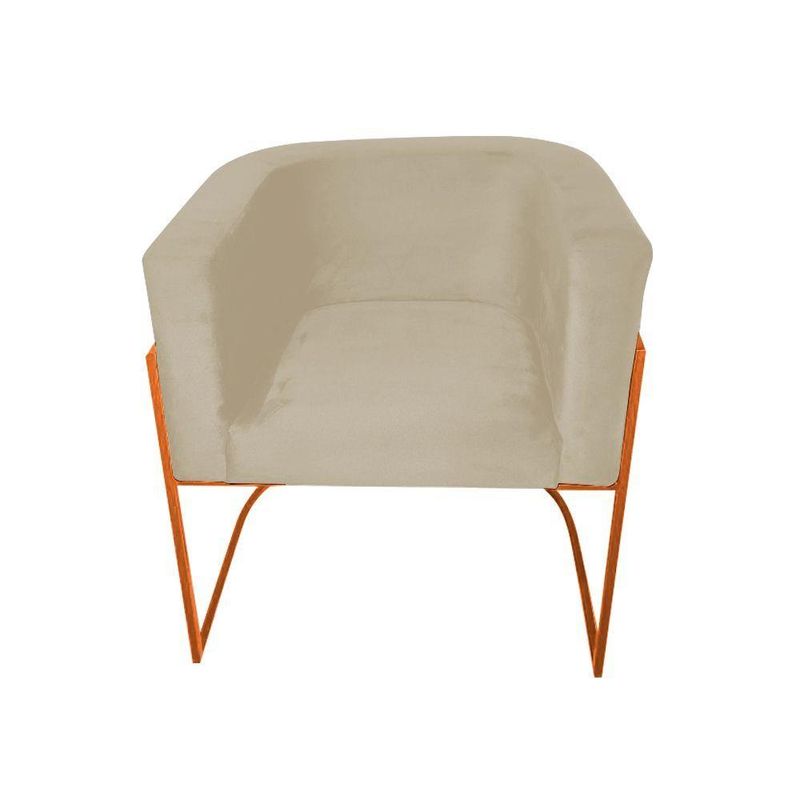 Kit 4 Poltronas Decorativa Sala De Estar Base De Ferro Cobre Veludo Bege - Bege