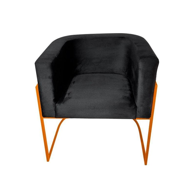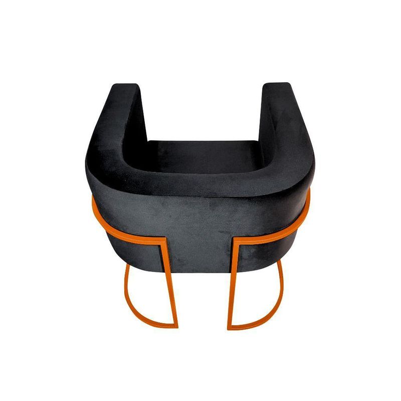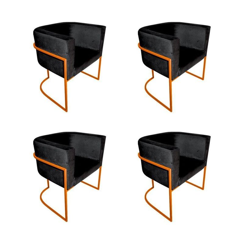 Kit 4 Poltronas Decorativa Sala De Estar Base De Ferro Cobre Veludo Preto - Preto
