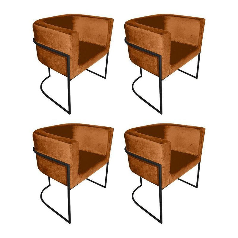 Kit 4 Poltronas Decorativa Sala De Estar Base De Ferro Preta Veludo Terracota - Laranja