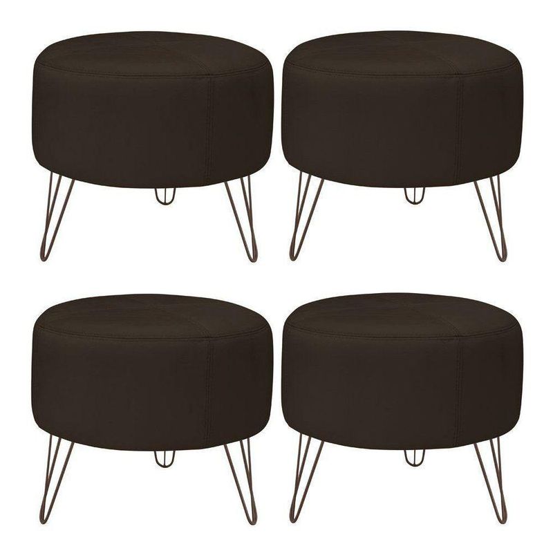 Kit 4 Puffs Decorativos Redondo Couro Marrom