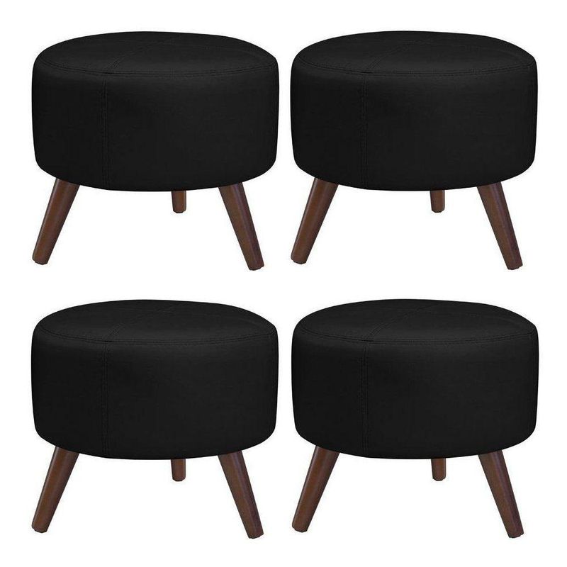 Kit 4 Puffs Decorativos Redondo Couro Preto