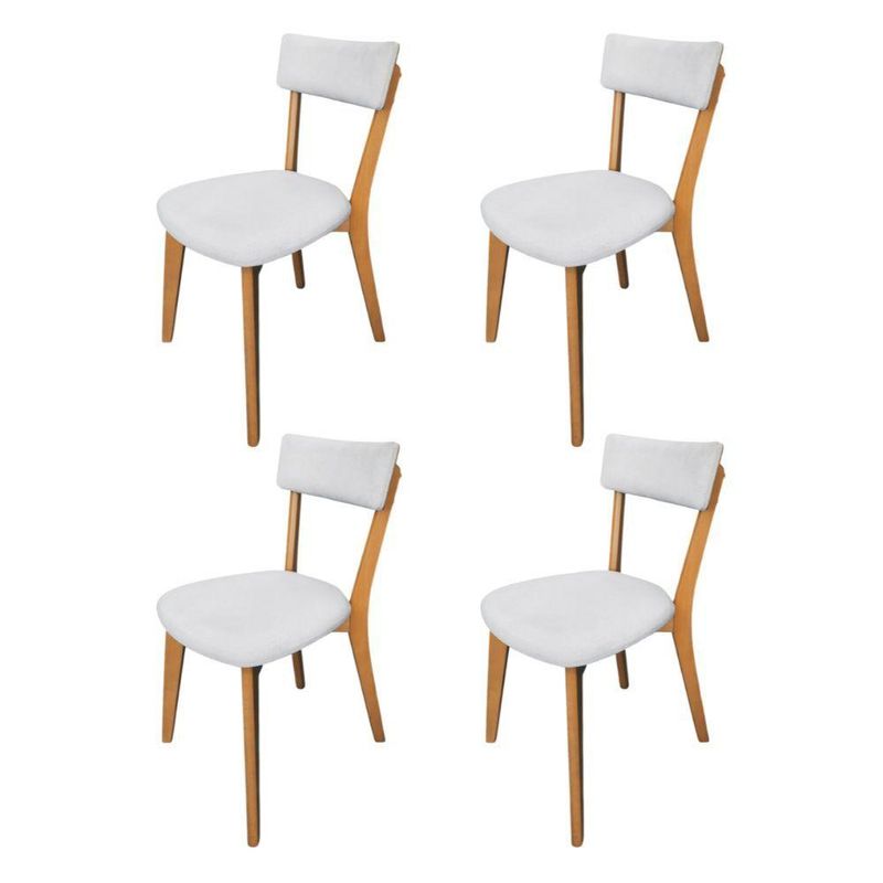 Kit 4 Un. Cadeira Nasa Estofada Em Madeira Maciça Carvalho Boucle Marfim