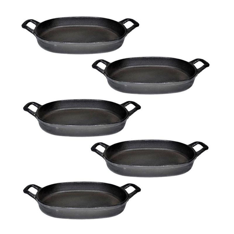 Kit 5 Assadeira de Ferro Lisa Oval Alça Ferro ST 35x24cm