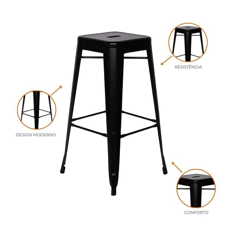 Kit 6 Banquetas Alta Oficial Iron Tolix Preto