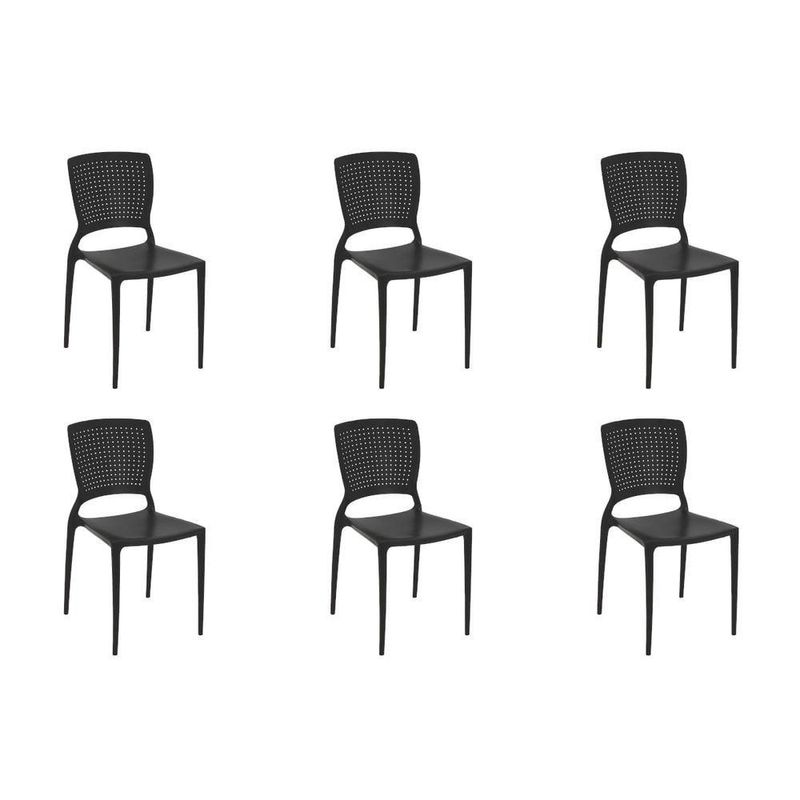Kit 6 Cadeiras Cozinha Jantar Tramontina Safira Em Polipropileno Preto