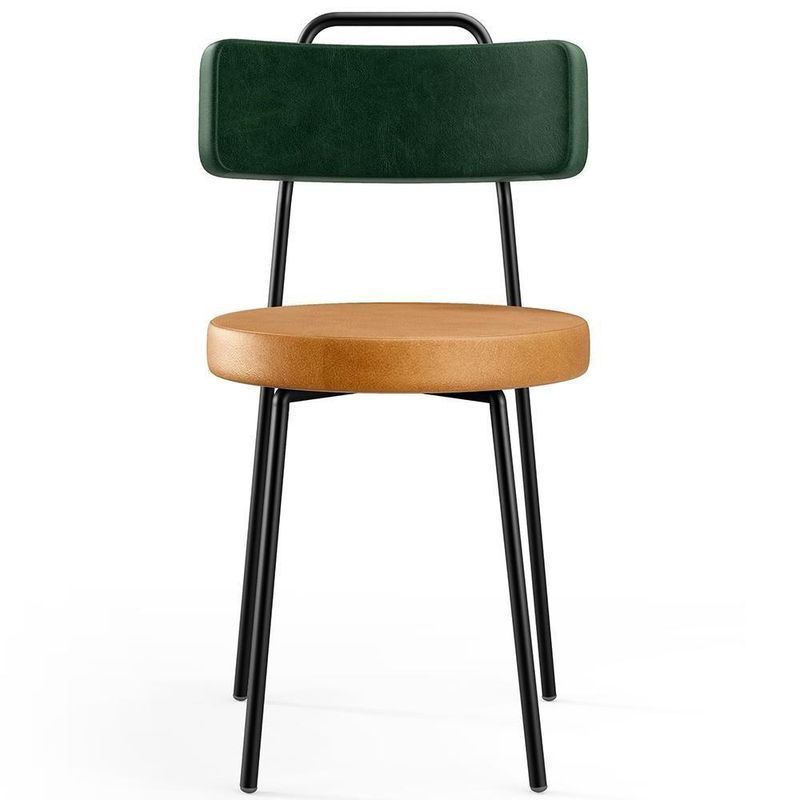 Revestimento do encosto em Facto na cor Verde Musgo e assento em Couríssimo na cor Whisky, com acabamento semi brilho.