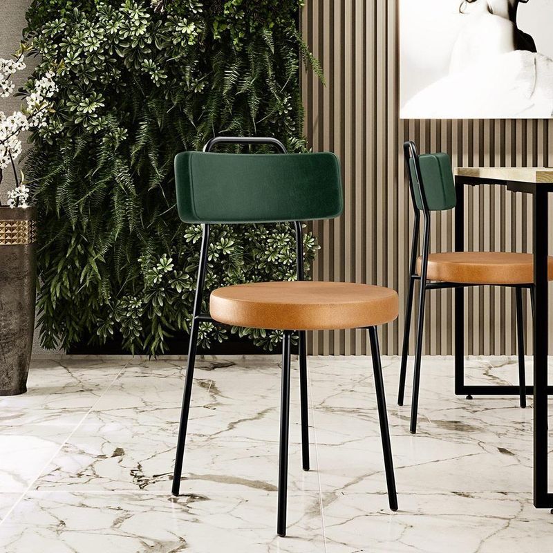 Amplamente moderna, dispondo de muito realce e design singular, o Kit 6 Cadeiras Para Cozinha Sala De Jantar Barcelona L02 Facto Verde Musgo Couríssimo Whisky - Lyam Decor vem com a personalidade e elegância que sua decoração merece! Estruturada em aço carbono, contrasta lindamente com o encosto e assento estofados, cabe mencionar ainda seu revestimento em Facto e Couríssimo, é confeccionada por materiais de excelente qualidade, extremamente resistentes e aconchegantes.