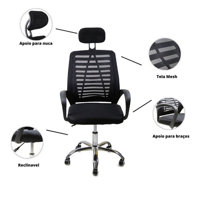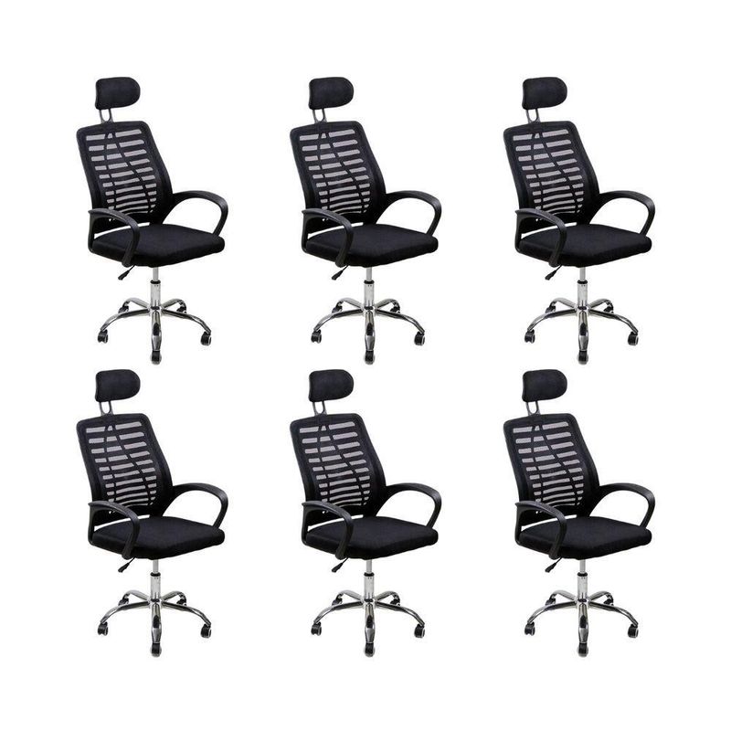 Kit 6 Cadeiras Escritório Diretor Tela Mesh Encosto De Cabeça Preto