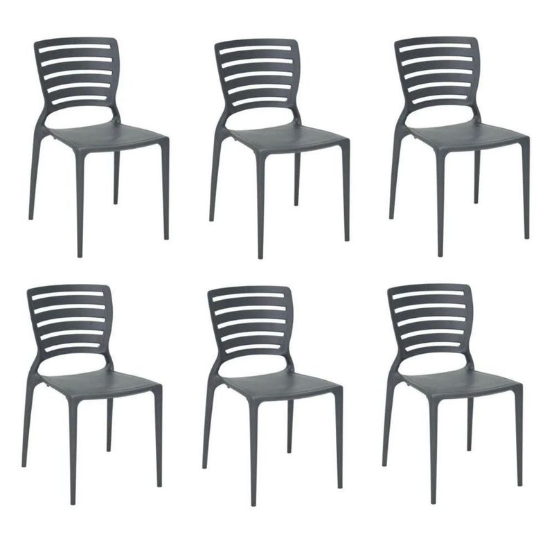 Kit 6 Cadeiras Sofia Grafite Tramontina Encosto Vazado Horizontal 92237/007