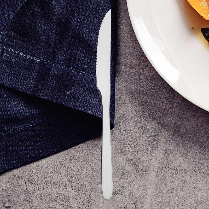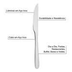Sua lâmina é submetida ao processo térmico, que a torna resistente à corrosão e não risca as porcelanas, além de oferecer fio de corte perfeito para as ocasiões que exigem esse tipo funcionalidade, a faca possui acabamento em brilho