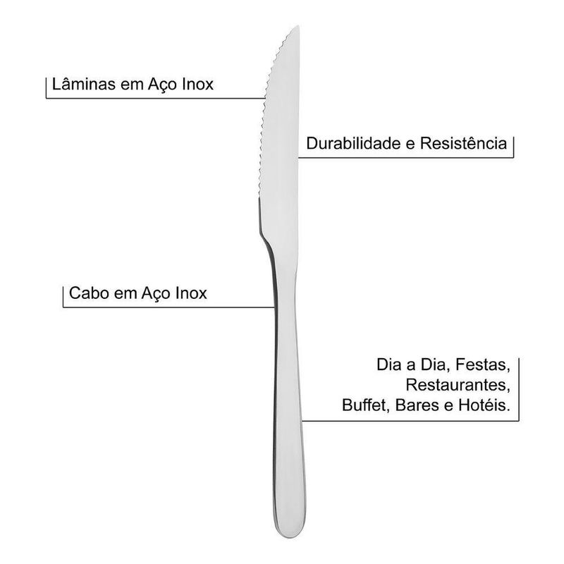 Faca Em Aço Inox, Faca de Serra, Faca de Serrinha, Faca de Churrasco, Faca Para Churrasco, Faca de Mesa, Faca Para Carne, Talher, Talheres Uso Diário, Jogo de Talheres, Faqueiro, Jogo de Faqueiros, Jogo de Facas, Conjunto de Facas, Cabo Inox, Tramontina, Restaurantes, Talheres, Faqueiro, Atacado, Buffet, Bar, Hotel.