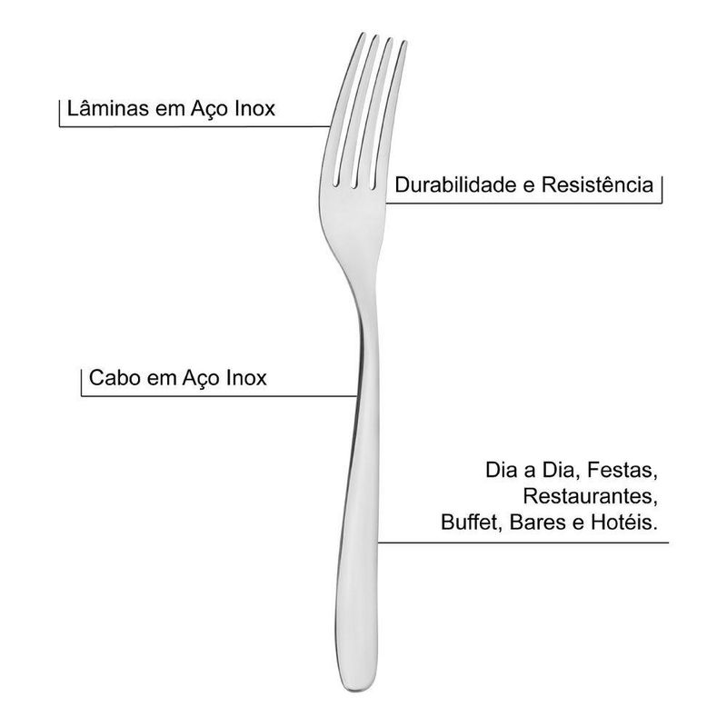 O Garfo é produzido totalmente em aço inox tem maior durabilidade proporcionando muita beleza e resistência para o uso no seu dia a dia.