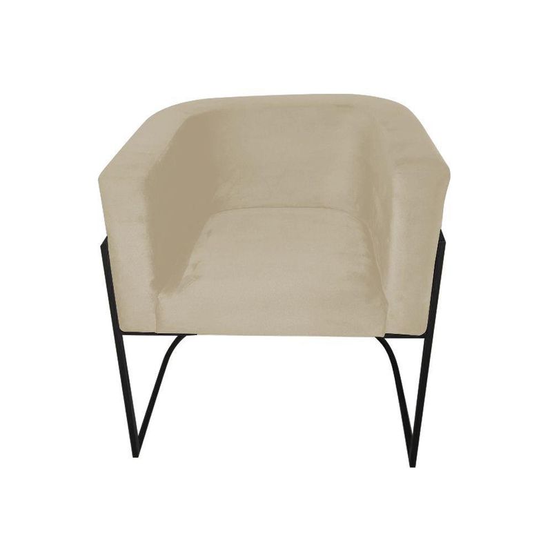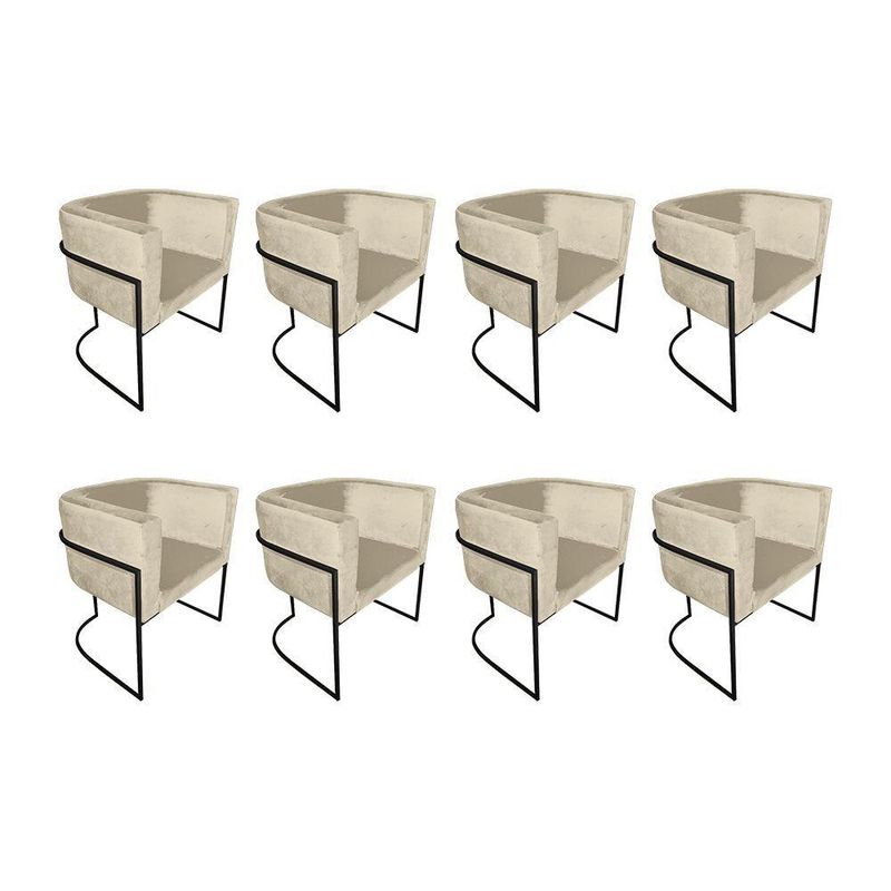 Kit 8 Poltronas Decorativa Sala De Estar Base De Ferro Preta Veludo Bege - Bege