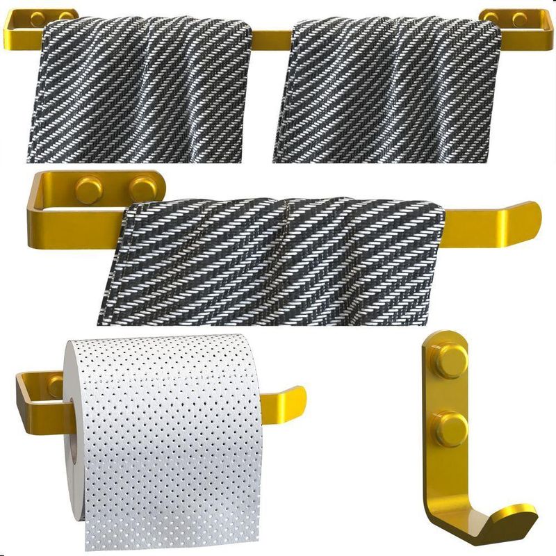 Transforme seu banheiro em um ambiente organizado, moderno e sofisticado com o Kit Acessórios Para Banheiro Dourado 4 Peças Plus. Produzido em aço carbono de alta qualidade, com pintura eletrostática epóxi Dourada, este kit une resistência, durabilidade e elegância para o seu dia a dia.Material Reforçado ? Aço carbono de alta resistência, ideal para uso diárioNão Enferruja Fácil ? Acabamento premium que protege contra umidade e corrosãoDesign Clean e Sofisticado ? Cor Dourada para um visual moderno e eleganteInstalação Prática ? Furos alinhados, parafusos sextavados e tampas de acabamento para um acabamento impecávelKit com 4 Peças ? Tudo o que você precisa para um banheiro funcional e sofisticadoESPECIFICAÇÕES TÉCNICASMaterial: Aço CarbonoAcabamento: Pintura Eletrostática Epóxi DouradoQuantidade de Peças: 4MEDIDASGancho: Altura 6.5cm x Profundidade 5.5cm x Largura 1.6cmPorta Papel Higiênico: Altura 6.5cm x Profundidade 9cm x Largura 15cmPorta Toalha de Rosto: Altura 1.6cm x Profundidade 6cm x Largura 21cmPorta Toalha de Banho: Altura 1.6cm x Profundidade 6cm x Largura 44cmITENS INCLUSOS01 Porta Toalha de Rosto Plus Dourado01 Porta Toalha de Banho Plus Dourado01 Porta Papel Higiênico Plus Dourado01 Gancho Plus DouradoKit de fixação completo (parafusos, buchas e tampas de acabamento)Um Kit Acessórios para Banheiro resistente, bonito e funcional, que deixa seu banheiro muito mais organizado e elegante.