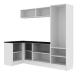 - Conteúdo da Embalagem: Um (1) balcão de 40 cm com uma (1) porta e tampo | Dois (2) aéreos de 80 cm com uma (1) porta basculante cada | Um (1) balcão de canto reto com uma (1) porta e tampo | Um (1) balcão de 80 cm com duas (2) portas e tampo | Uma (1) torre de 60 cm com duas (2) portas, sendo uma (1) maior