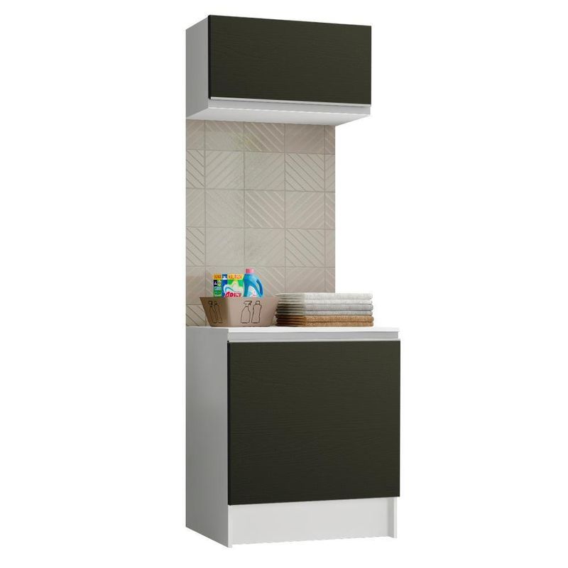 Kit Área De Serviço Madesa Topazio 60 Cm Com Armário E Balcão - Branco/pretoCor: Branco/preto
