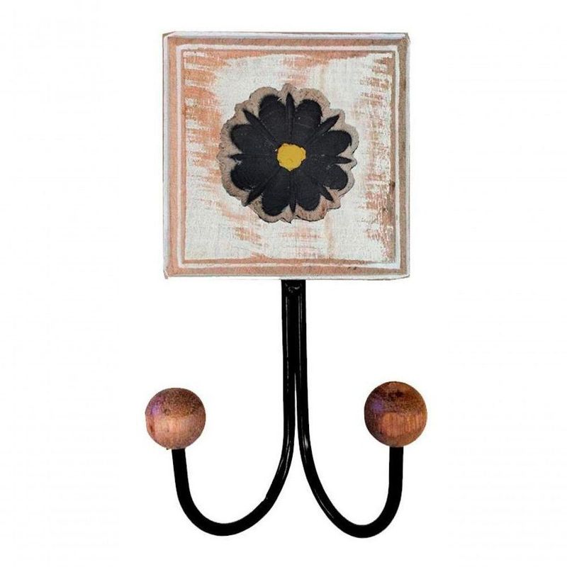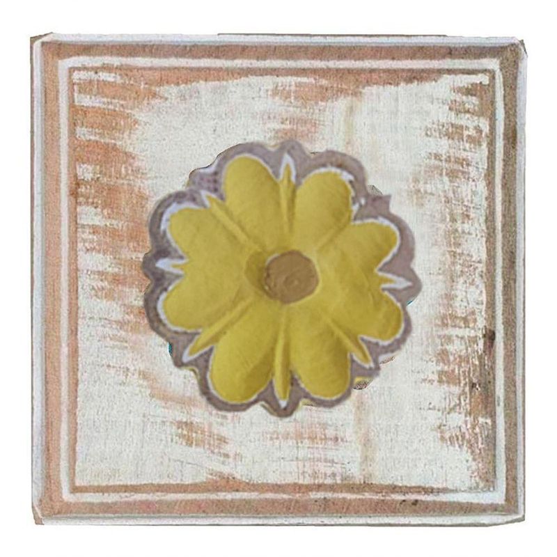 Kit Banheiro 2 Peças. 1 Toalheiro Duplo + 1 Porta Papel Higiênico Artesanal Flor Madeira Cor Amarelo