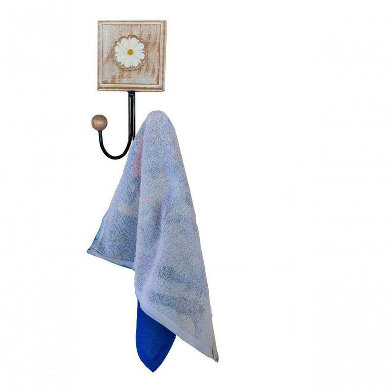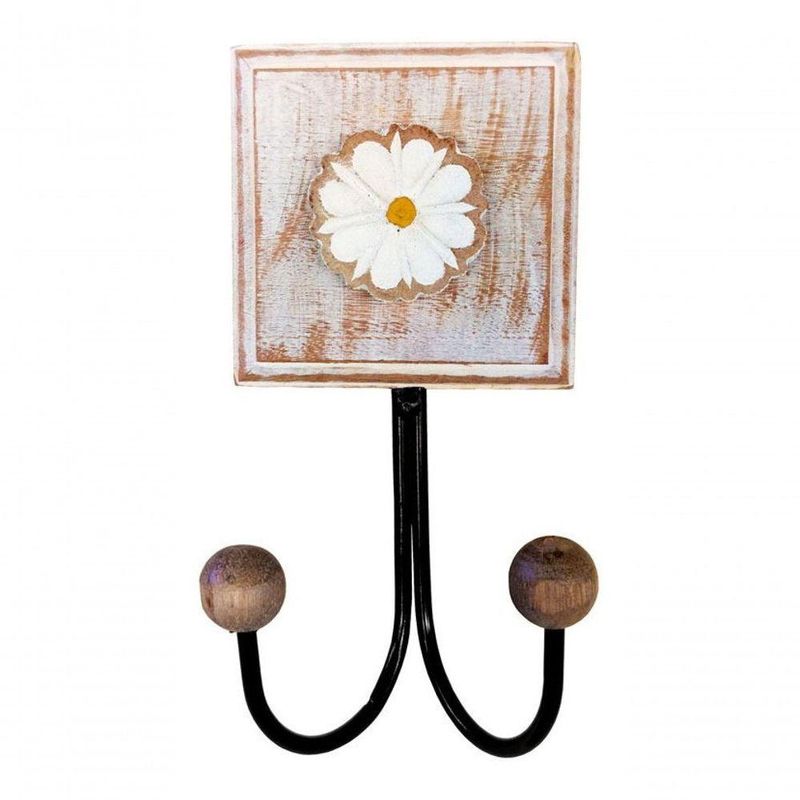 Kit Banheiro 2 Peças. 1 Toalheiro Duplo + 1 Porta Papel Higiênico Artesanal Flor Madeira Cor Branco
