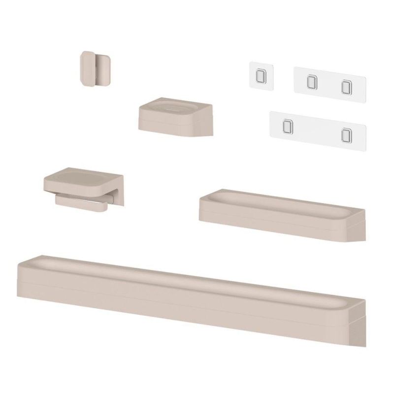 Kit Banheiro 5 Peças Saboneteira + Porta Papel Higiênico + Porta Shampoo + Toalheiro + Gancho + Adesivos Bege Ou