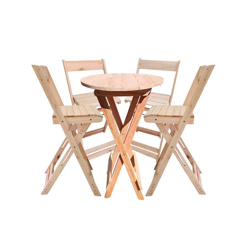 Kit Bistrô 4 Banquetas Dobrável De Madeira Para Churrasqueira Natural